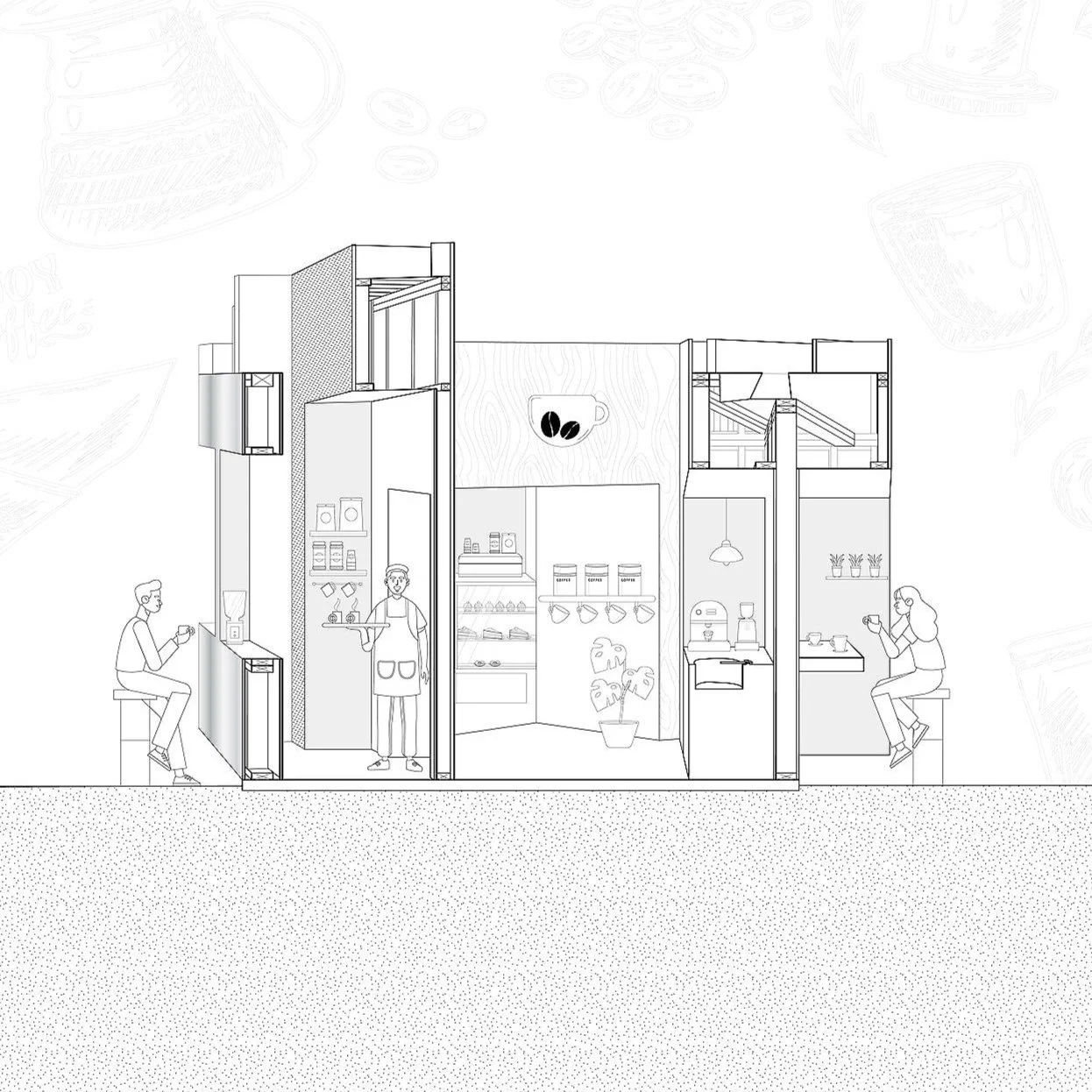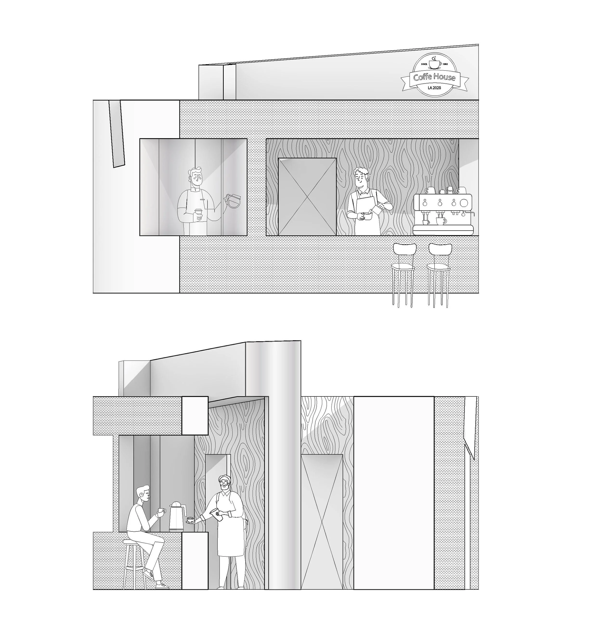 In terms of material, I used metal plates on the exterior for creating resemblance to a coffee machine. In the interest of generating a contrasting experience, I used wood on the interior, which is a reminder of an actual coffee shop or a coffee cup.