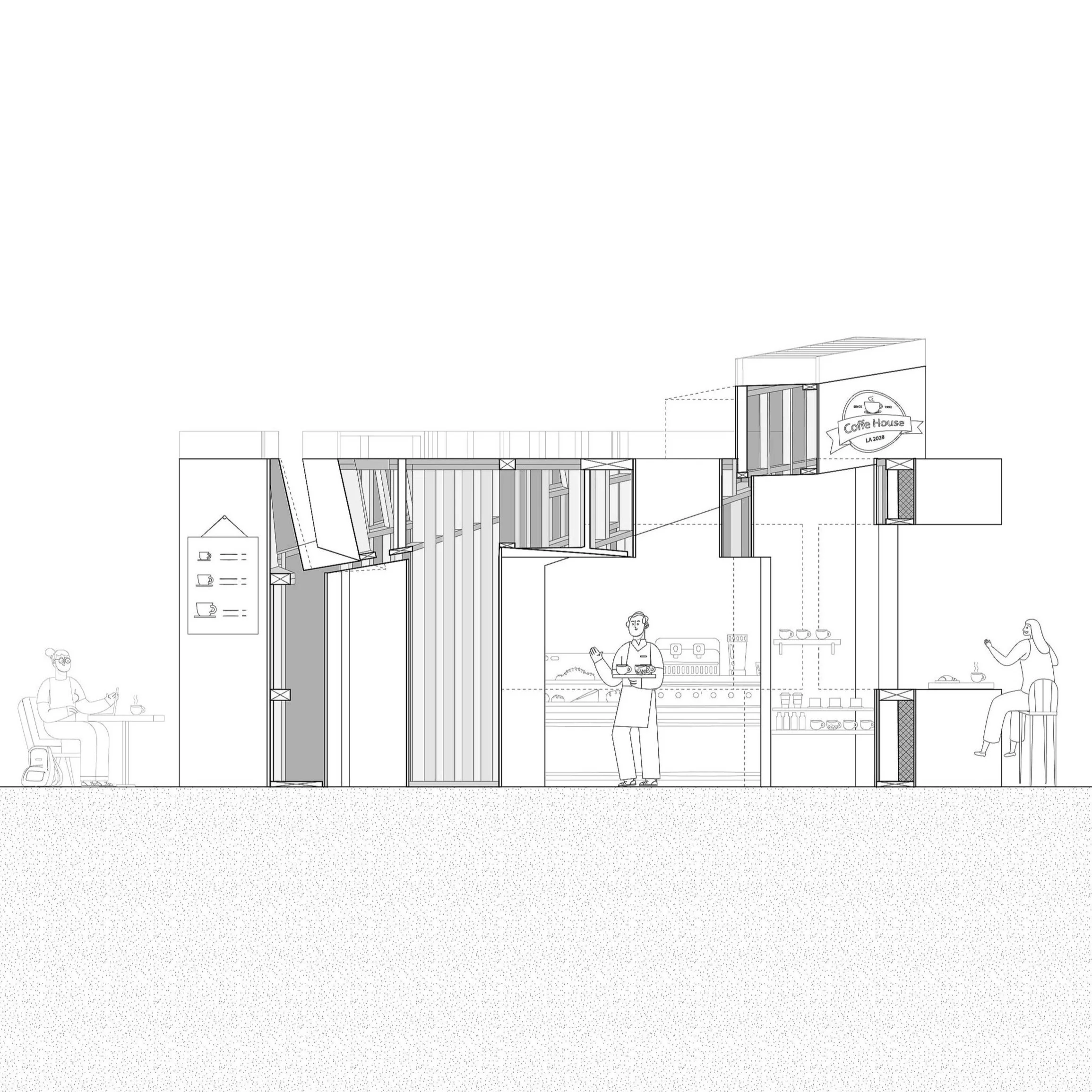The aim was to design a prototype for an iconic concession stand for the 2028 Olympics in Los Angeles. The concession stand would serve as both a food service venue and a visual marker for event sites across the city. The stand must be approximately 300 to 400 square feet with a maximum height of 20 feet.